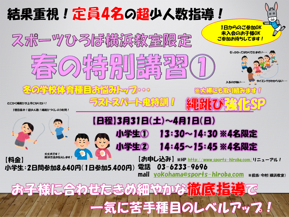 いつもお世話になっております。スポーツひろばの今村です。 3月に入り少しずつ寒さも緩んでまいりましたね。 新年度…